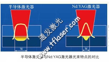 從上圖我們可以看出半導體激光器在焦點前后的光束發(fā)散明顯小于YAG激光器。