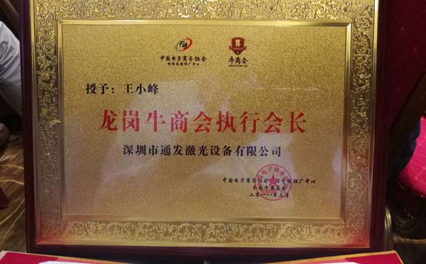深圳市龍崗牛商會執行會長,深圳市通發激光設備有限公司副董事長王小峰從深圳上千企業家中脫穎而出,同其他九位優秀企業家共同獲得了第九屆深圳十大牛商的殊榮。