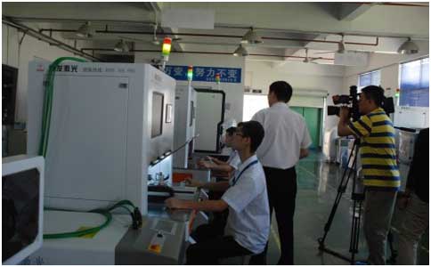 在鳳凰衛(wèi)視的杜編導熱情的訪問后,通發(fā)激光副董事長王小峰帶領(lǐng)杜編導以及他的同事參觀生產(chǎn)車間,樣品車間,研發(fā)車間,了解通發(fā)生產(chǎn)的激光焊接機、激光打標機等。