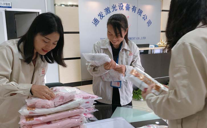 誰說紅顏不封侯,誰說女子不如男。縱觀歷史長河,花木蘭從軍,穆桂英掛帥……我們從事的崗位不同,職責也不盡相同,尤其說道女性。二十一世紀的女性,不僅要貌美如花,還要掙錢養家,背負著精神上和身體上的聚大壓力一路奮勇直前,無怨無悔。她們心中有愛,善良永存。“三八婦女節”緩緩到來,為了體現公司對廣大女性的關愛,通發激光的領導們已早早準備好精美的禮物,為公司里辛勤工作的小花們慶祝婦女節。
