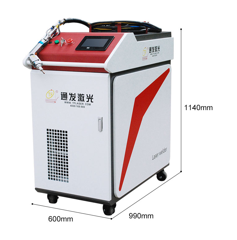 通發激光一體式手持式激光焊接機,用手持式焊接槍替代以前固定光路,手拿焊接,靈活方便,焊接距離更長,克服工作臺空間的局限性,工件尺寸不統一時無法自動焊接的情況下使用。主要針對大型工件、固定位置如內直角、外直角、平面焊縫焊接、焊接時熱影響區域小,變形小、而且焊接深度大,焊接牢固。是遠距離焊接大工件的較為靈活的全新的焊接工藝。
