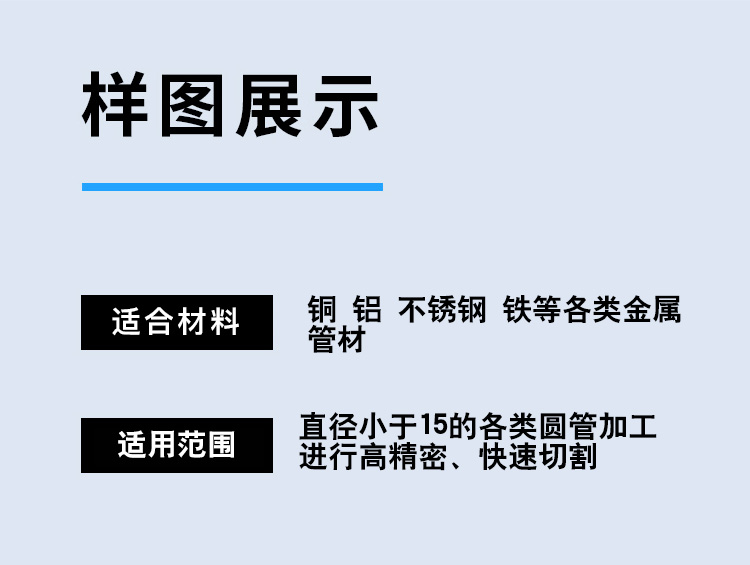 連續(xù)加工:圓管直徑≤25mm,長(zhǎng)度≤3米 單件加工:直徑≤25,長(zhǎng)度≤300mm圓形產(chǎn)品(需配夾具) |