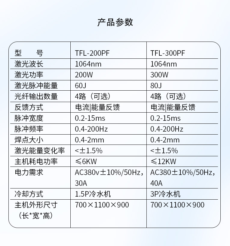 通發激光TFL-300PF光纖激光焊接機,精密能量反饋控制模式,穩定性<3%,經過光纖優化獲得卓越的光束質量,適合1mm以下精密手機五金激光焊接、廚衛家電五金不銹鋼精密激光焊接加工。